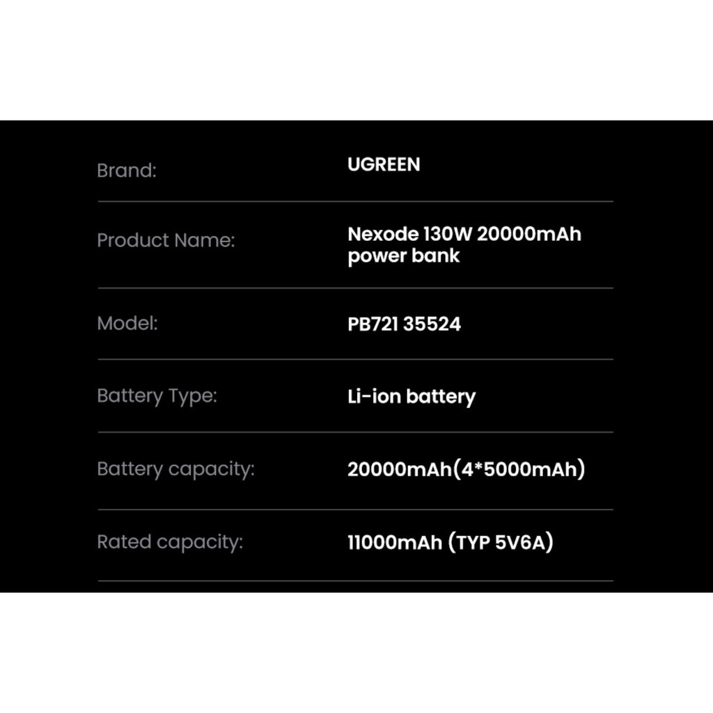 UGREEN Nexode Power Bank 20000mAh 130W - Grey (UG-PB721-35524B)