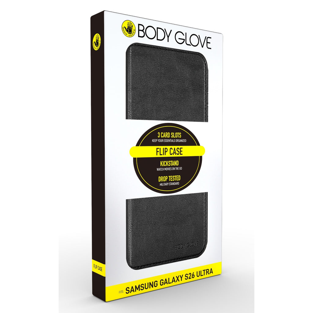 Combine elegance and functionality with our Body Glove Flipcase for the Samsung Galaxy S26 Ultra! Designed to protect your phone from every angle, this stylish case features a durable outer cover, and a scratch-resistant interior. With built-in card slots and a secure magnetic closure, it is the perfect blend of wallet and phone case. Enjoy hands-free convenience with the adjustable stand, ideal for video calls or binge-watching your favourite shows. Sleek, protective, and practical - upgrade your phones style and with our versatile flip case today!