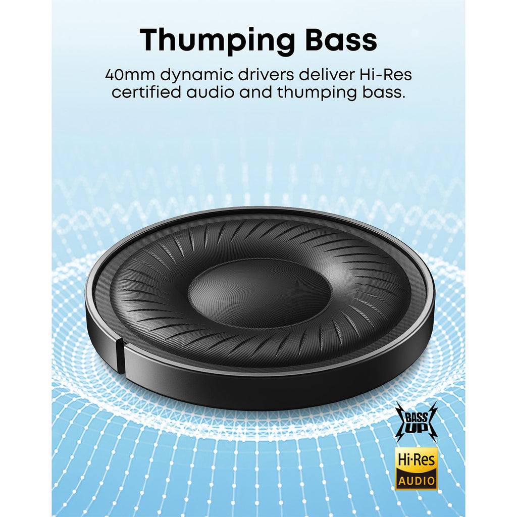 The noise cancelling headphones have oversized 40mm dynamic drivers that produce detailed sound and thumping beats with BassUp technology. Compatible with Hi-Res certified audio via the AUX cable for more detail. 2 internal and 2 external mics work in tandem to detect external noise and effectively reduce up to 90% of it, such as planes and car engines. With 40 hours of battery life with ANC on and 60 hours in normal mode, you can commute in peace without thinking about recharging. Fast charge for 5 mins to get an extra 4 hours of playtime. Connect to two devices simultaneously with Bluetooth 5.0 and instantly switch between them. Whether you are working on your laptop, or need to take a phone call, audio will automatically play from the device you need to hear from.